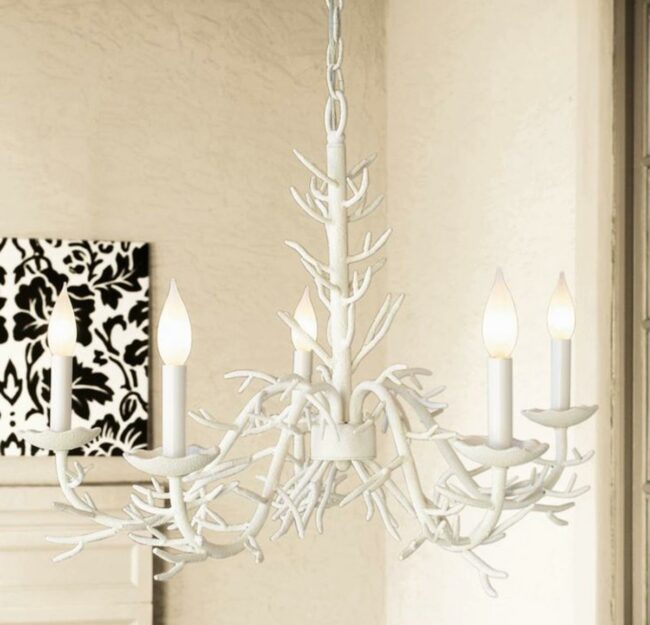 Modern elegance radiates from this white branch-inspired chandelier that spreads outward with artistic flair.