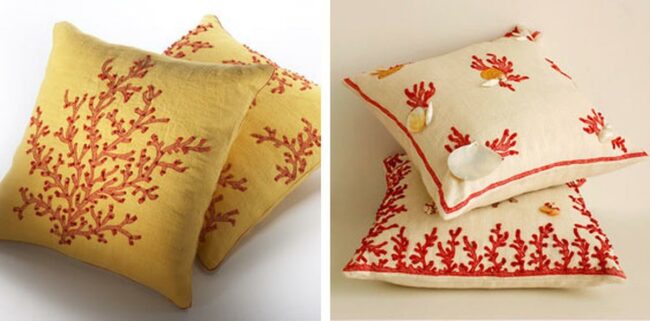 Red coral patterns dance across these eye-catching pillows, adding instant personality to any room without trying too hard.
