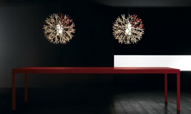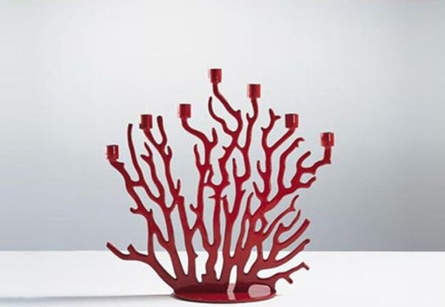 Red branch-shaped candle holders bring artistic flair to any home with their eye-catching design against white surfaces.