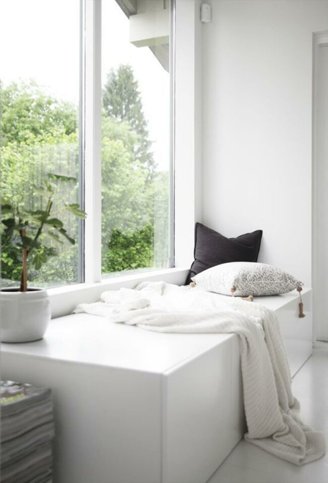 Nestled between white walls, this charming window nook invites you to curl up and escape from everyday stress.