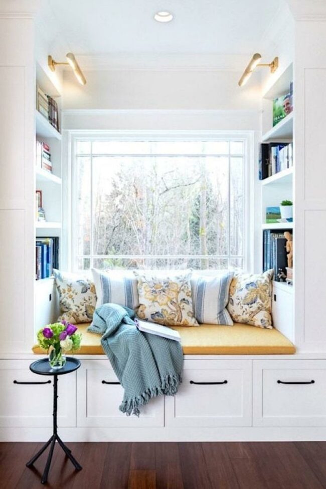 These charming alcoves make excellent use of natural light, allowing readers to bask in sunshine while flipping through their favorite books.