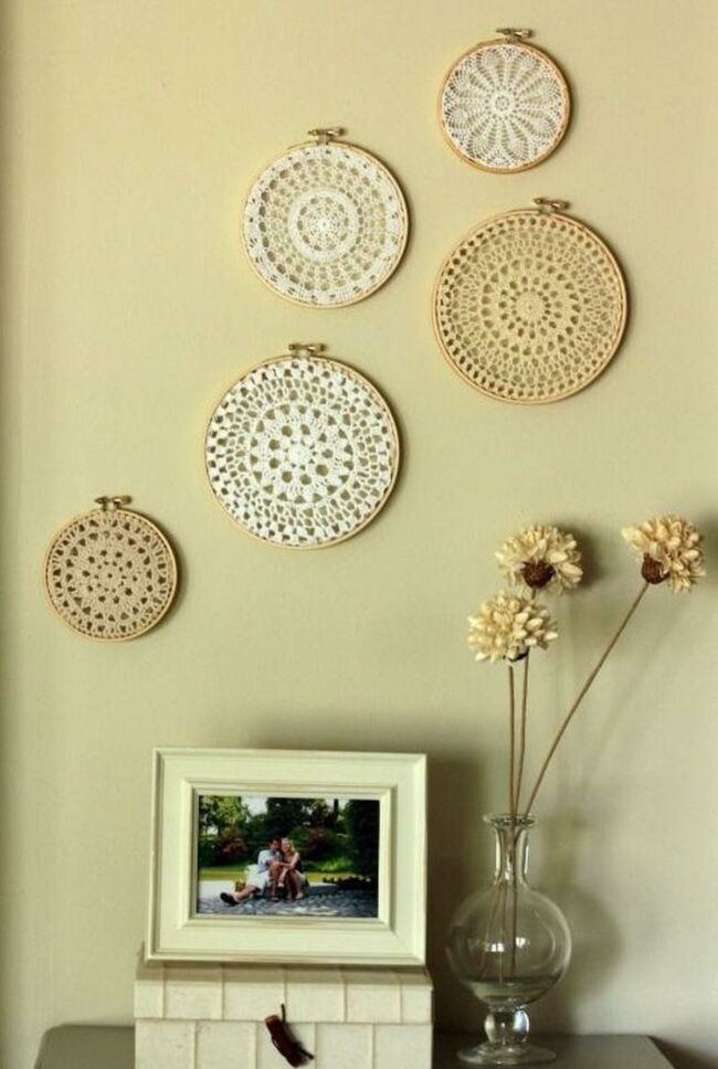 These frames showcase the beauty of combining traditional handicraft with artistic imagery in home decor.
