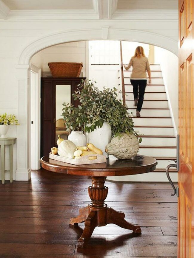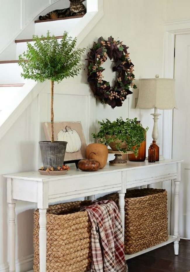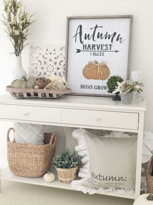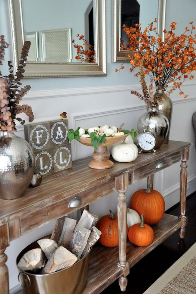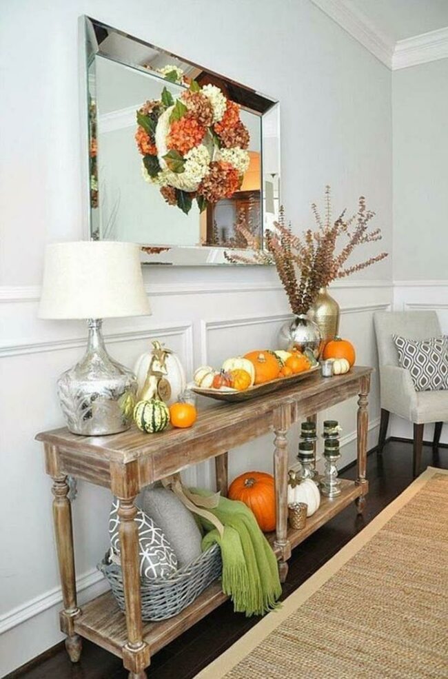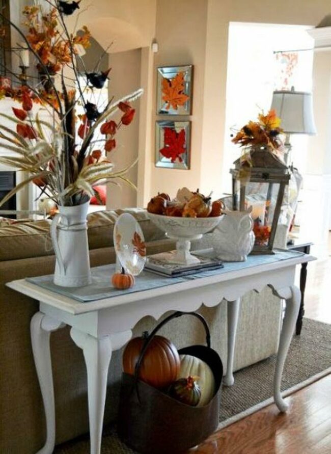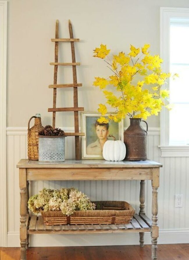 Hallway tables are perfect autumn storytellers that capture seasonal warmth with rustic charm.